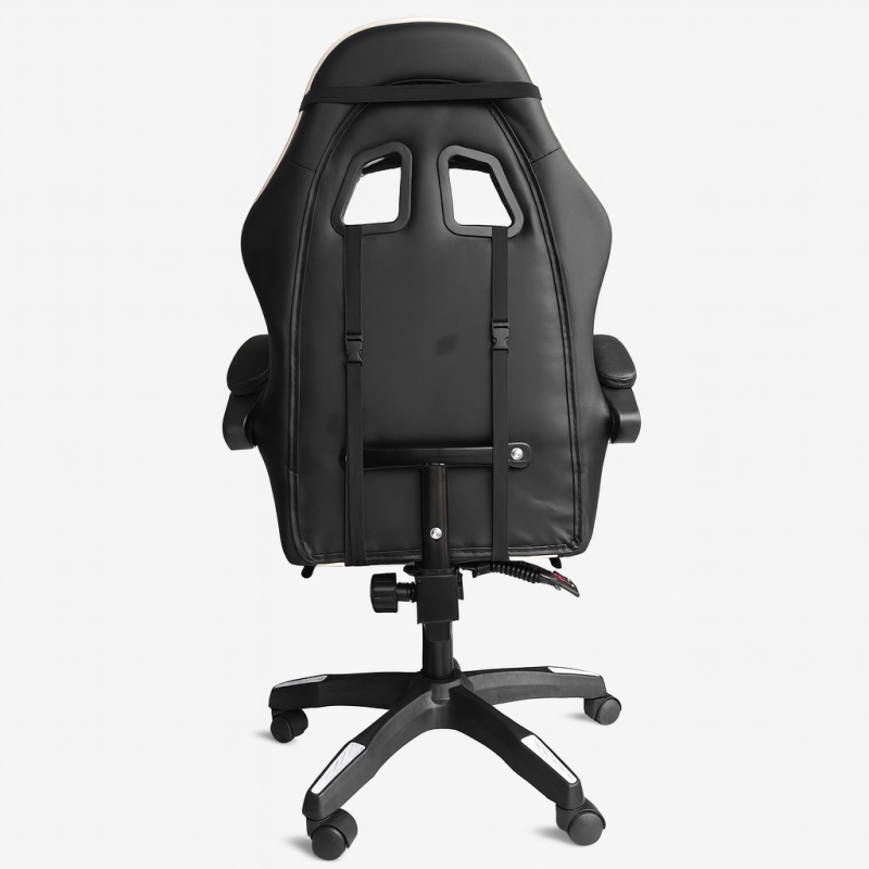 KOMFORTOWY FOTEL GAMINGOWY Z PODNÓŻKIEM Specyfikacja fotela gamingowego maksymalne obciążenie 150 kg eko skóra w środku zastosowana wysokiej jakości pianka EPE kółka plastikowe całkowita wysokość fotela 105-113 cm całkowita szerokość 62 cm Waga 13,5 kg komplet dwóch poduszek w zestawie Wymiary kartonu z krzesłem: 74 x 25 x 59cm, Waga fotela w opakowaniu 13,5 kg Cechy fotela: siedzisko, wypełnione miękką podwójną gąbką oparcie, zagłówek powleczone ekoskórą regulacja kąta odchylenia oparcia wraz z blokada podłokietniki pokryte gąbką oraz ekoskóra stabilna i wytrzymała pięcioramienna podstawa wysokiej jakości kółka regulowana poduszka lędźwiowa Zdjęcia poniżej przedstawiają rzeczywisty produkt. REGULACJA – fotel posiada regulacje wysokości siedziska. Dzięki temu możesz dostosować jego wysokość do swoich indywidualnych potrzeb co jest niewątpliwą zaletą. Możliwość regulacji odchylenia fotela, (90 -155 stopni) gwarantuje Ci chwilę relaksu i rozluźnienia. Pokrycie – szerokie siedzisko, oparcie, zagłówek oraz wierzchnia strona podłokietników powleczone wysokiej jakości ekoskóra, oraz zastosowanie pianki EPE.