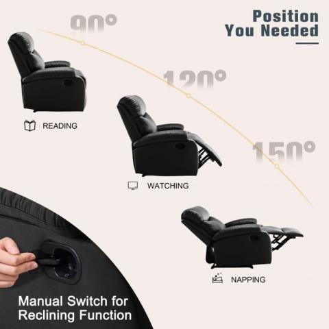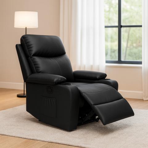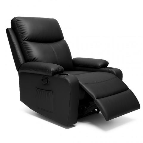Fotel, sofa rozkładana jednoosobowa VERO z uchwytem na napój, ekoskóra czarna SOF01CZ