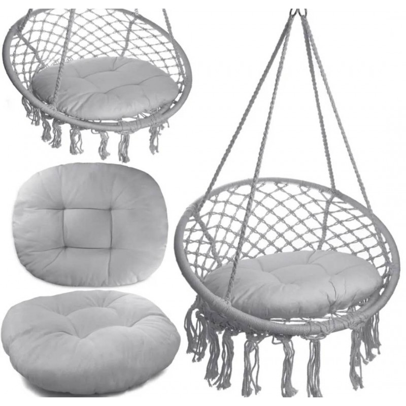 Fotel wiszący bocianie gniazdo hamak BOHO, huśtawka z poduszką Szara KR33SZ