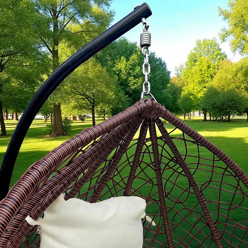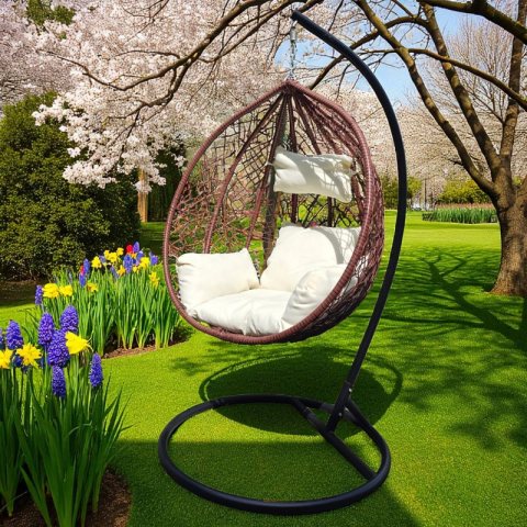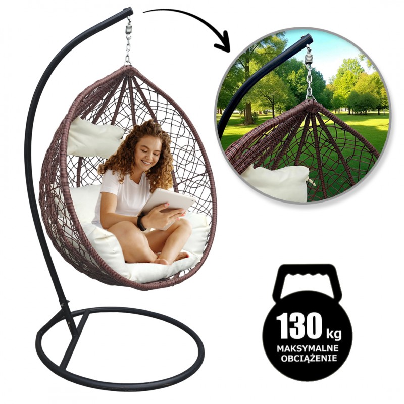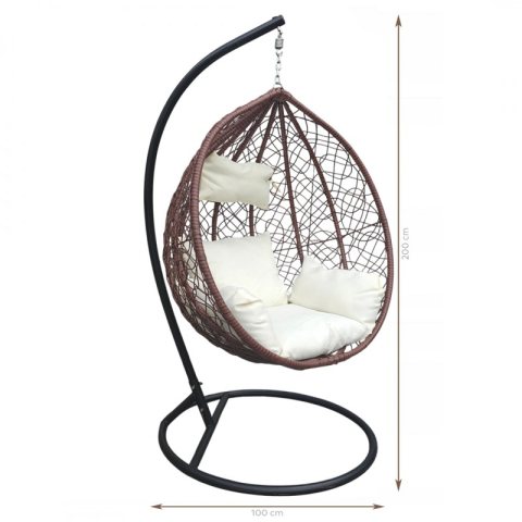 Fotel wiszący, huśtawka kokon brązowy z jasnymi poduszkami KR23BR