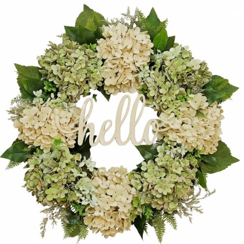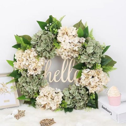 Girlanda, wianek ozdobny na drzwi, jesienny, HORTENSJE, napis HELLO WSN29