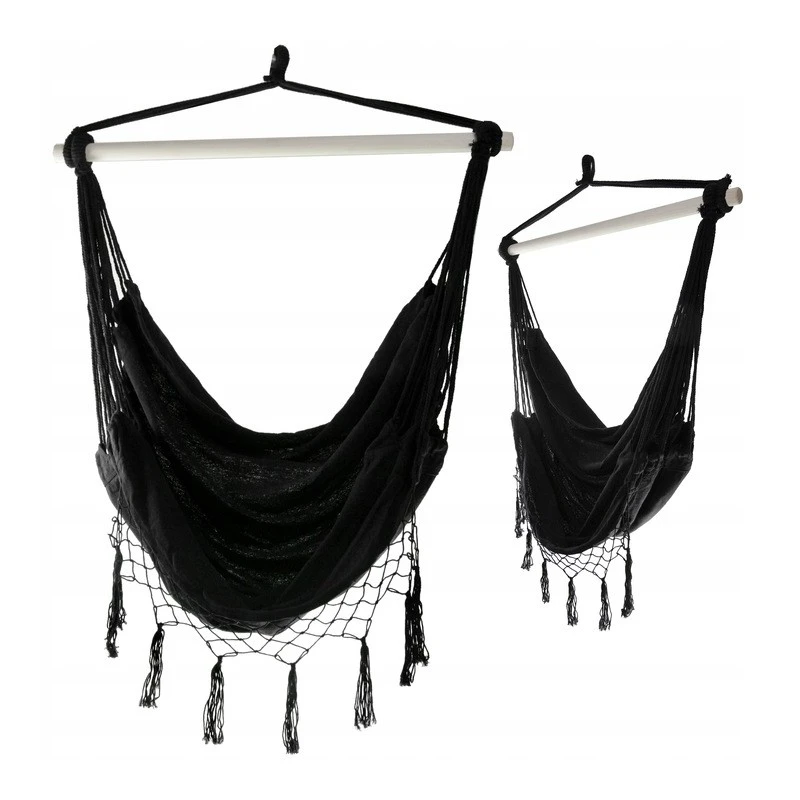 HAMAK BOHO HUŚTAWKA FOTEL WISZĄCY Cudowny dodatek do twojego ogrodu jak i domu, który umili Twoje chwile Wykonana w wysokiej jakości metalowej konstrukcji oraz wytrzymałego na naprężenia sznurka w postaci splotu. Huśtawka została zaprojektowana tak, aby siedzenie na niej sprawiało jak najwięcej przyjemności. Wysokie oparcie sprawia, że można się na niej położyć i odpoczywać. Hamak nadaje się zarówno do domu, jak i na zewnątrz. Huśtawka nie zawiera poduszek. DANE TECHNICZNE: • maksymalne obciążenie: do 100 kg • mocne, plecione liny • produkt nadaje się do prania ręcznego • powierzchnia siedzenia (średnica): 62 cm • wysokość oparcia: 47 cm • szerokość całkowita huśtawki – drewniany uchwyt : 100 cm • długość całkowita: 120 cm • długość frędzli: 22 cm • waga: 2,9 kg Dodatkowe informacje: Elementy potrzebne do montażu huśtawki nie stanowią kompletu z huśtawką wiszącą. Huśtawka pakowana w foliowe opakowanie..