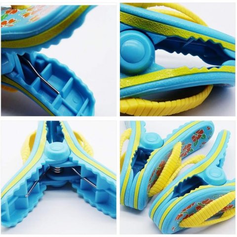 Klipsy do ręcznika na plaże – zestaw 2 spinki Spinka wysokiej jakości ! Idealne wykonanie! Zestaw zawiera 2 spinki Niech Twój ręcznik będzie bezpieczny na porywy wiatru! Spinki wykonane z wysokiej jakości tworzywa sztucznego. Odporny na zużycie i wysokie temperatury. Klipsy mogą być również używane do wieszania prania i mokrych strojów kąpielowych. Wymiary: 11,5 cm x 9 cm x 3,5 cm Wymiary opakowania: 21 cm x 14 cm Materiał: tworzywo sztuczne Waga zestawu: 117 g
