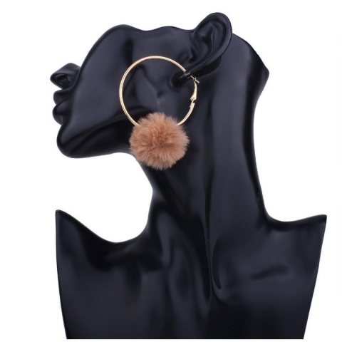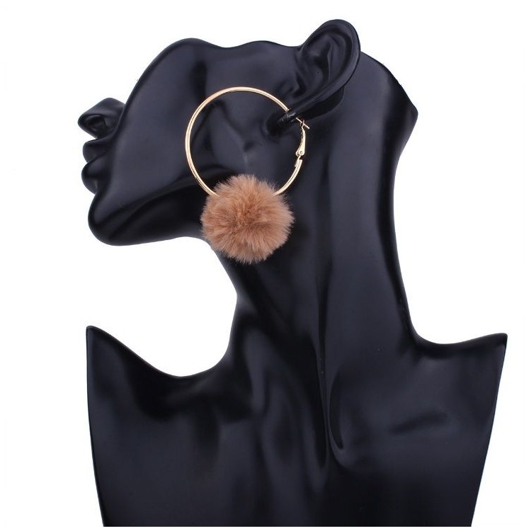 KOLCZYKI KOŁA POMPON BEŻOWE K632BEZ