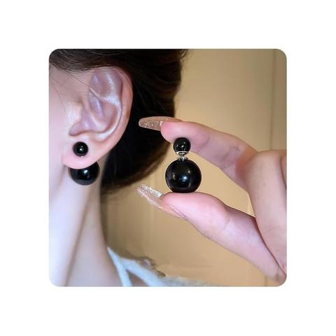 KOLCZYKI KULE TRIBALL PODWÓJNE SZTYFT BŁYSK CZARNE K69CZ