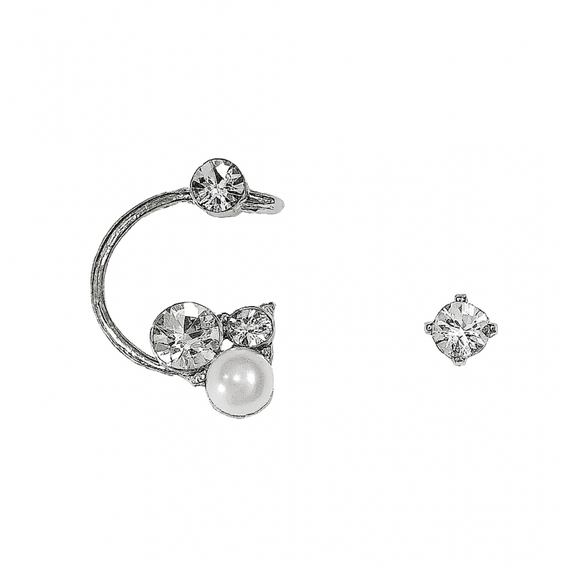 Kolczyki nausznica srebrne z cyrkoniami i perełką K325S