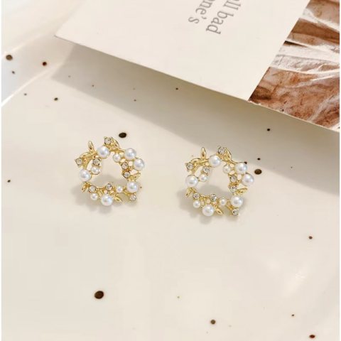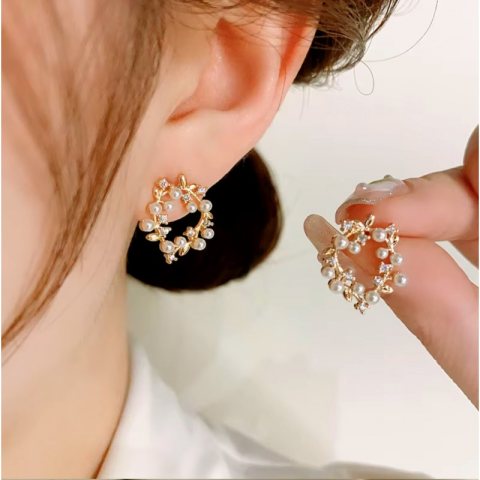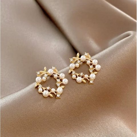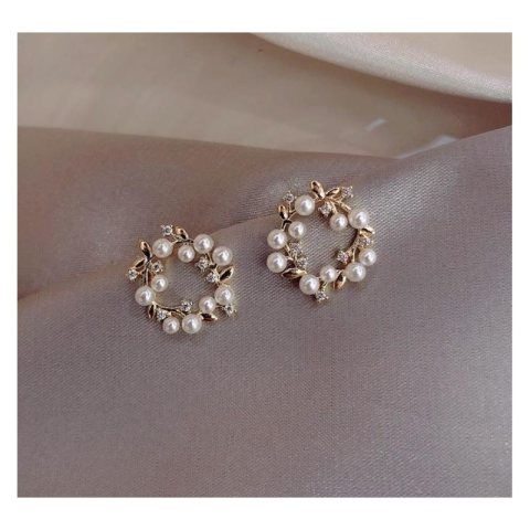 Kolczyki przy uchu delikatne wianiuszki z perełkami K1692