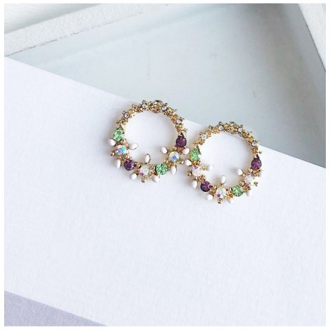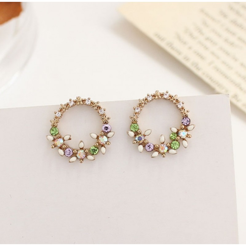 Kolczyki sztyfty wianki kolorowe cyrkonie kwiatuszki 1,9cm K1539