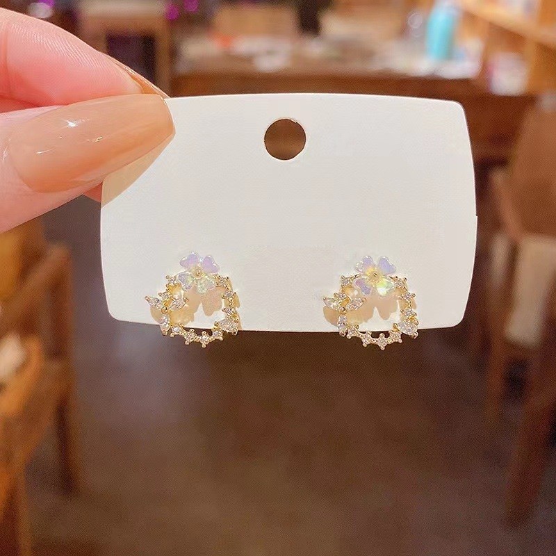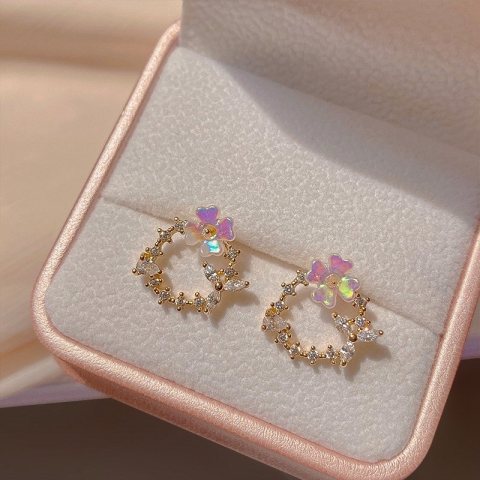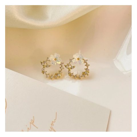 Kolczyki sztyfty wianuszki cyrkonie kwiatek K1672
