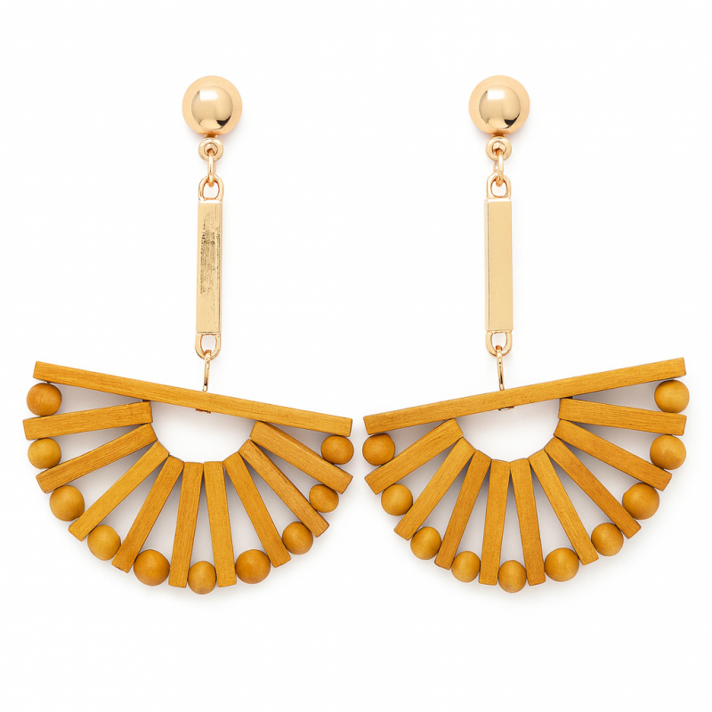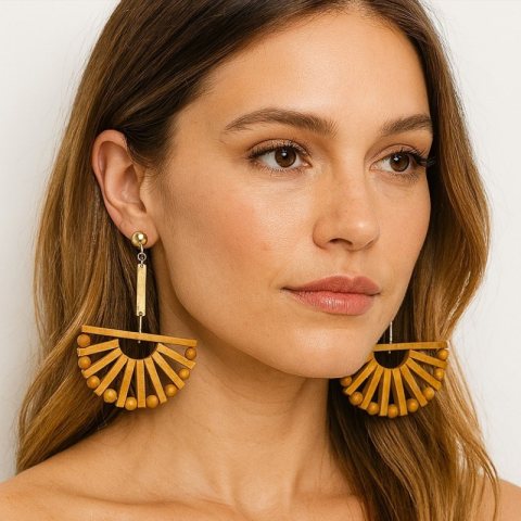 Kolczyki wiszące Bardzo modne i efektowne. Będą stanowić piękne uzupełnienie eleganckiej kreacji jak i codziennego stroju. Wykonane ze stopów metali nieszlachetnych. Biżuteria antyalergiczna, nie zawiera niklu ani chromu. Unikać kontaktu z wodą, perfumami. Wymiary: 6,5 x 8,5 cm