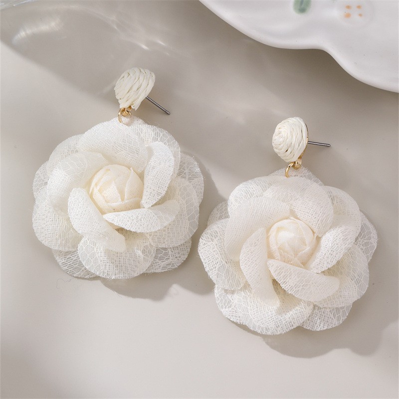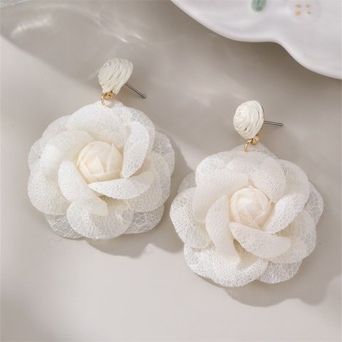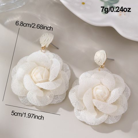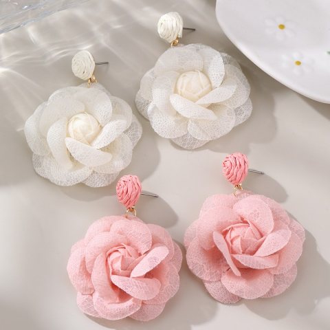 Kolczyki sztuczne tiulowe kwiaty Będą stanowić piękne uzupełnienie eleganckiej kreacji jak i codziennego stroju. Zapięcie: sztyft Wymiary: 6,5cm x 5 cm x 1,5cm Wymiary kartonika: 10cm x 8cm Waga: 9g netto / 11g brutto Biżuteria antyalergiczna, nie zawiera niklu ani chromu. Nie moczyć! Unikać kontaktu z wodą ! A wtedy posłuży bardzo długo!