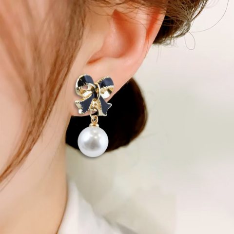 Kolczyki sztuczne perłowe kule z kokardkami Będą stanowić piękne uzupełnienie eleganckiej kreacji jak i codziennego stroju. Zapięcie: sztyft Wymiary: 1,9cm x 2,2cm Wymiary kartonika: 10cm x 8cm Waga: 5g netto/ 10g brutto Biżuteria antyalergiczna, nie zawiera niklu ani chromu. Nie moczyć! Unikać kontaktu z wodą ! A wtedy posłuży bardzo długo!