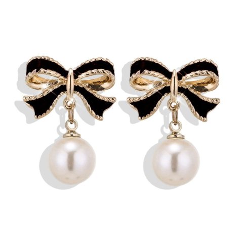 Kolczyki wiszące, efektowne perłowe Kule z kokardkami, K1690