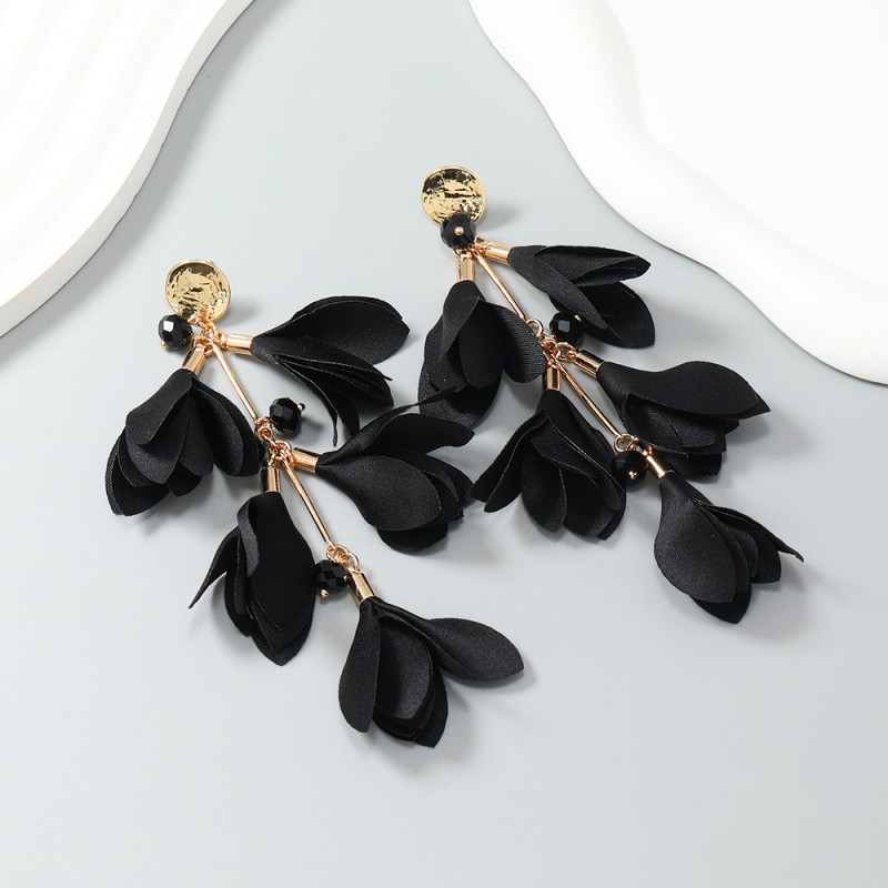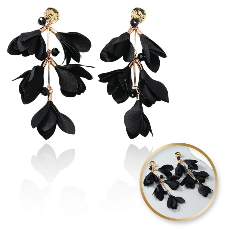 Kolczyki wiszące, efektowne tiulowe kwiat, czarne K1706