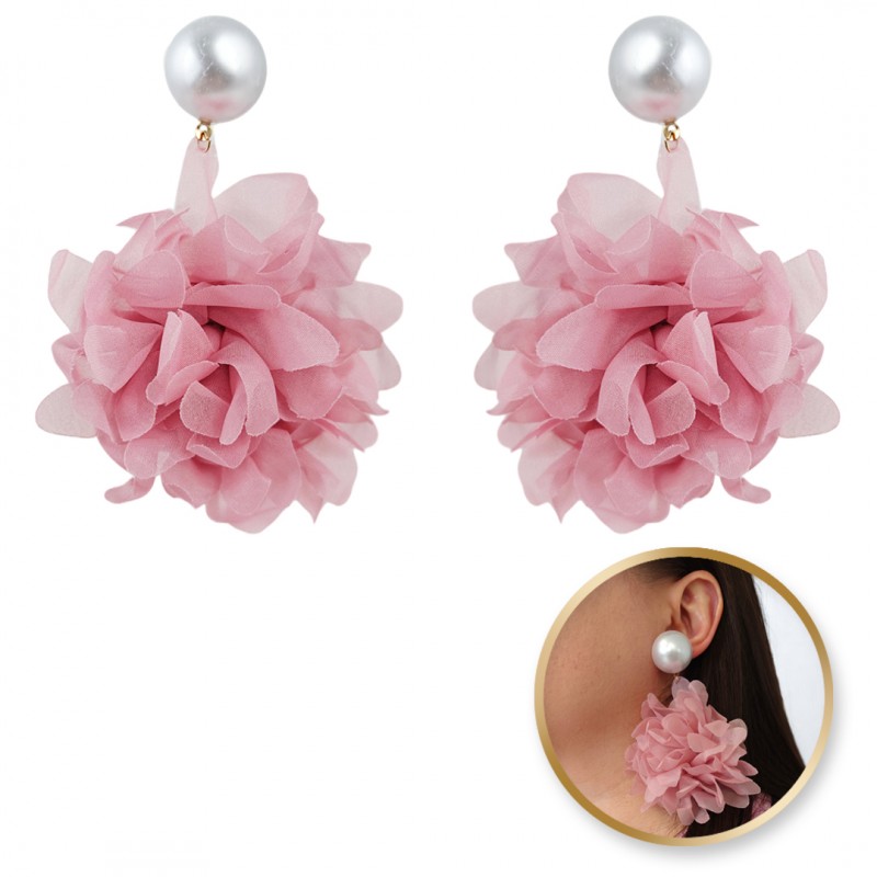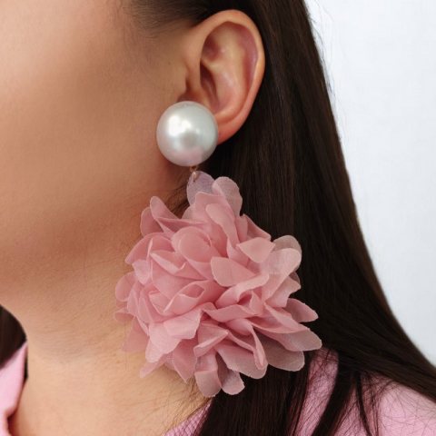 Kolczyki sztuczne tiulowe kwiaty Będą stanowić piękne uzupełnienie eleganckiej kreacji jak i codziennego stroju. Zapięcie: sztyft Wymiary: 10cm x 12 cm Wymiary opakowania: 16,5cm x 9cm Waga: 18g netto / 21g brutto Biżuteria antyalergiczna, nie zawiera niklu ani chromu. Nie moczyć! Unikać kontaktu z wodą ! A wtedy posłuży bardzo długo!