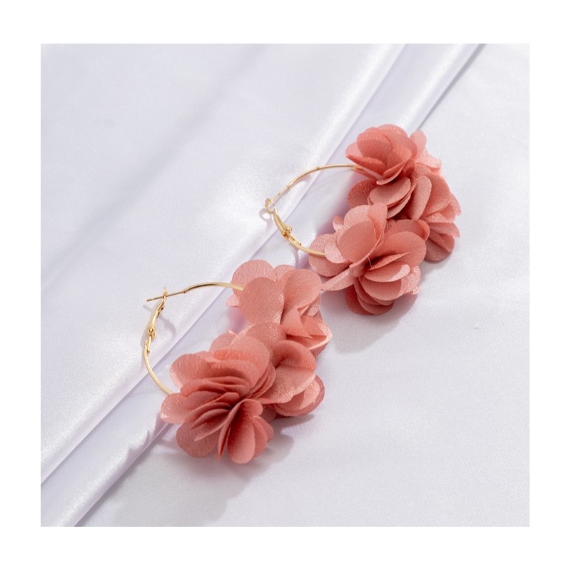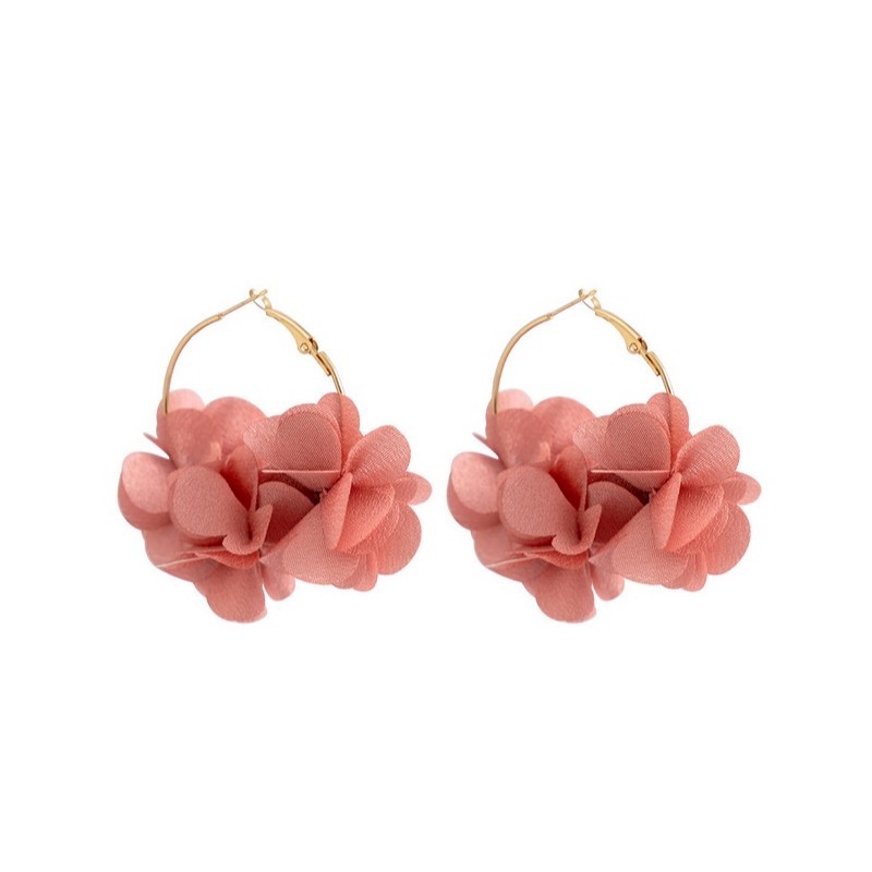 Kolczyki wiszące koła tiulowe kwiaty 6,5x5cm K1677R