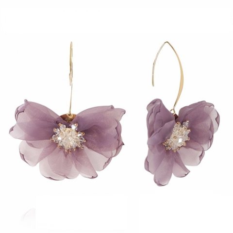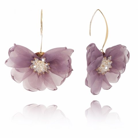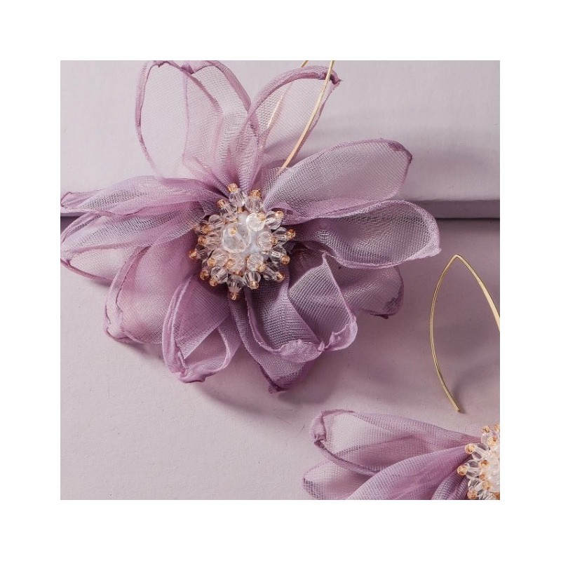 Kolczyki wiszące z kryształkami tiulowe kwiaty 10x8cm K1675FIO