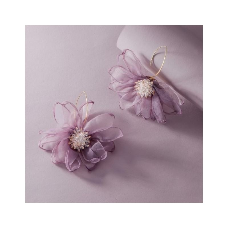 Kolczyki sztuczne tiulowe kwiaty. Będą stanowić piękne uzupełnienie eleganckiej kreacji jak i codziennego stroju. Zapięcie: bigiel Wymiary: 10 x 8cm Głębokość: 1,5 cm Wymiary kartonika: 10 cm x 8 cm Waga: 18g brutto 17 g netto Biżuteria antyalergiczna, nie zawiera niklu ani chromu. Nie moczyć! Unikać kontaktu z wodą ! A wtedy posłuży bardzo długo!