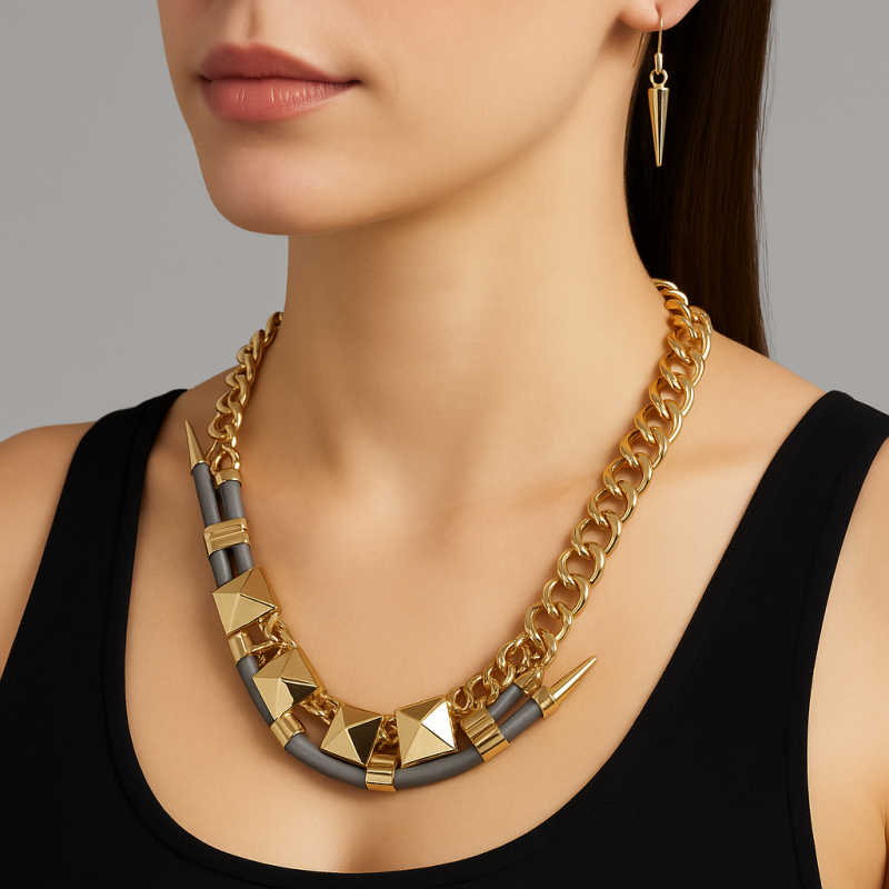 Kolia naszyjnik szpice, szara, złoty łańcuch N401