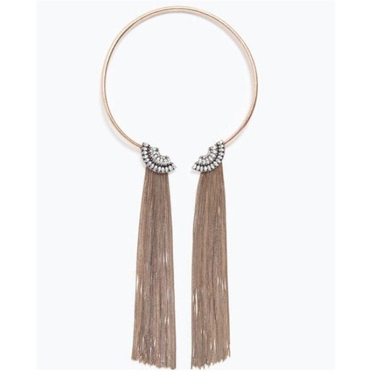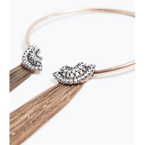 Klasyczne, piękne wzornictwo naszyjnika idealnie podkreśli naturalne piękno i klasę kobiety.Naszyjnik w kolorze złotym. z długimi wiszącymi łańcuszkami, zdobiony cyrkoniami.Świetnie pasuje do eleganckich, jak również do codziennych stylizacji.Elegancki dodatek na każdą okazję, do sukienek, swetrów i bluzek.W naszym naszyjniku każda kobieta poczuje się wyjątkowo i pięknie:)