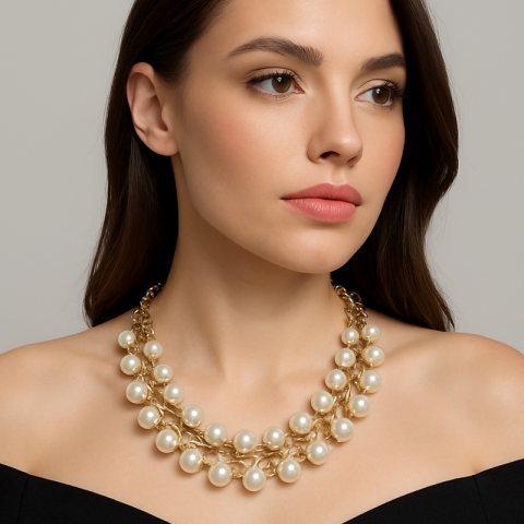 Kolia Zarka perły na złotym łańcuchu, efektowna N97
