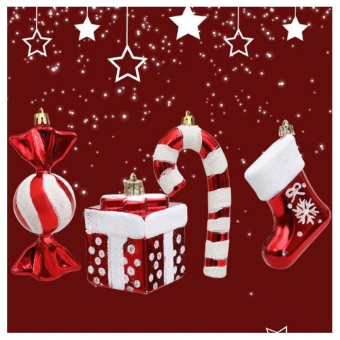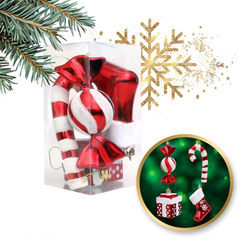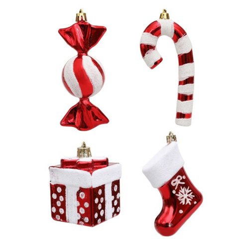 Komplet bombek cukierki 4 szt XL czerwone w opakowaniu, bombki na choinkę BSN51
