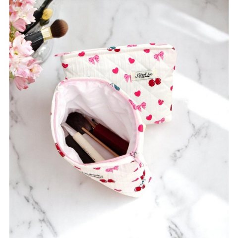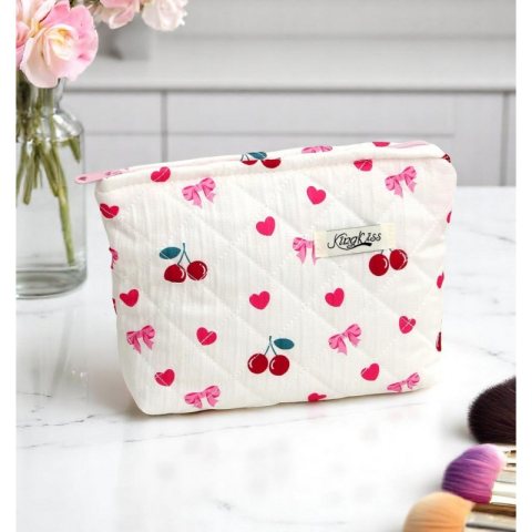 Kosmetyczka damska pikowana kuferek wisienki, kokardki 26 x 7 x 18 cm KS151