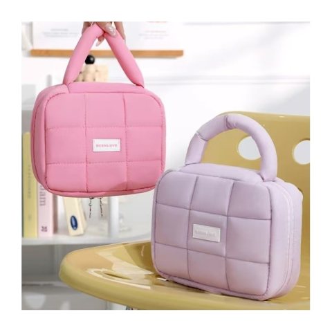 Kosmetyczka damska pikowana kuferek z rączką 21 x 17 x 8cm KS139R