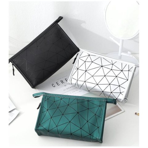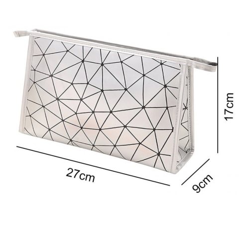 Organizer na kosmetyki / kosmetyczka podróżna Modny dodatek na podróż – rozkładana kosmetyczka z pięknym wzorem! Piękna, damska rozkładana kosmetyczka z geometrycznymi wzorami. Wykonana z miękkiego, śliskiego materiału. Bardzo praktyczna i uniwersalna. Kosmetyczka w sam raz na dłuższe podróże czy wyjazdy – jest bardzo poręczna i pojemna, pomieści wszystkie niezbędne rzeczy. Zapinana na zamek. Kosmetyczka jest bardzo pojemna. Wymiary: 27 x 17 x 9cm