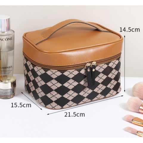 Kosmetyczka rozkładana brąz pepitka kuferek KS53