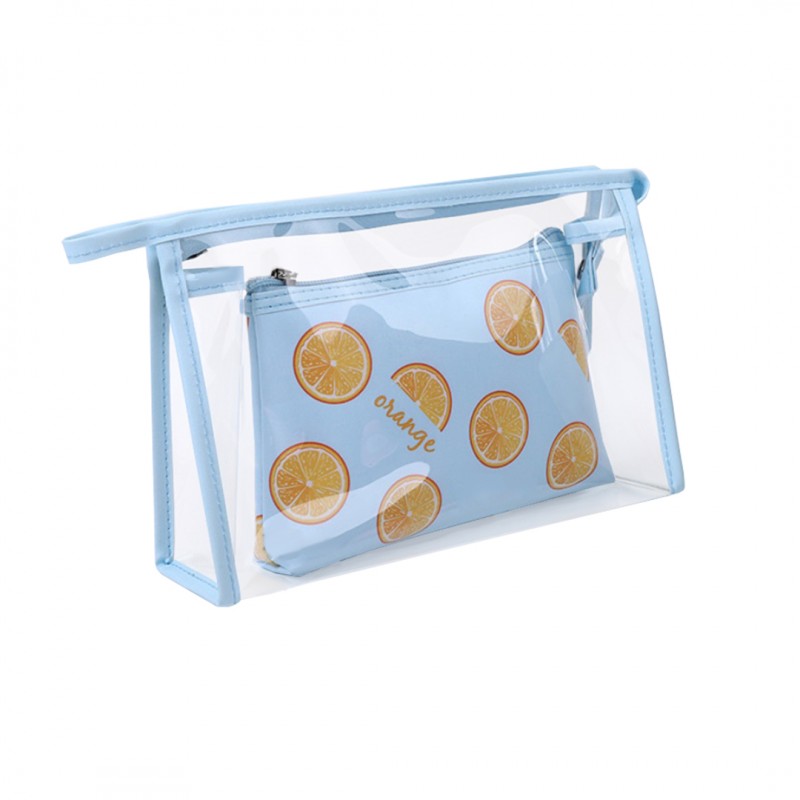 Kosmetyczka rozkładana niebieska pomarańcze 2w1 kuferek KS60