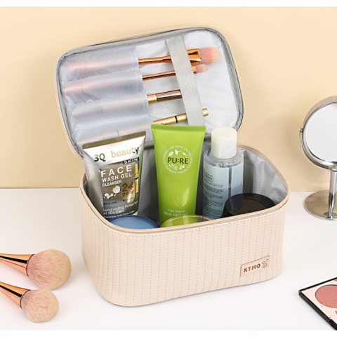 Organizer na kosmetyki / kosmetyczka podróżna Wykonana z miękkiego, śliskiego materiału. Bardzo praktyczna i uniwersalna. Kosmetyczka w sam raz na dłuższe podróże czy wyjazdy – jest bardzo poręczna i pojemna, pomieści wszystkie niezbędne rzeczy. Posiada jedną komorę zasuwaną na zamek. Kosmetyczka jest bardzo pojemna. Wymiary: 22 x 13,5x 12 cm Waga: 113g