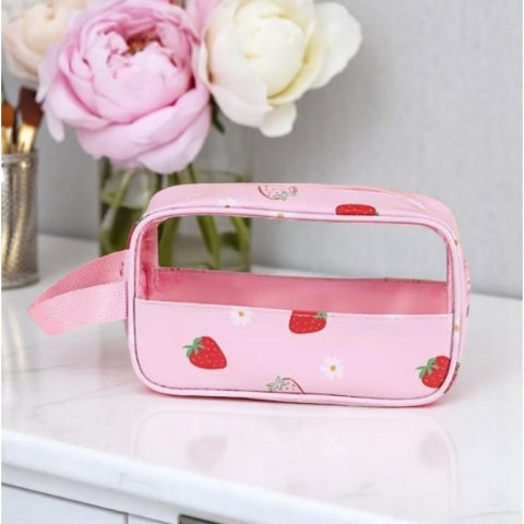 Kosmetyczka rozkładana przenośna kuferek rozmiar S 22x7x13cm TRUSKAWKI KS149