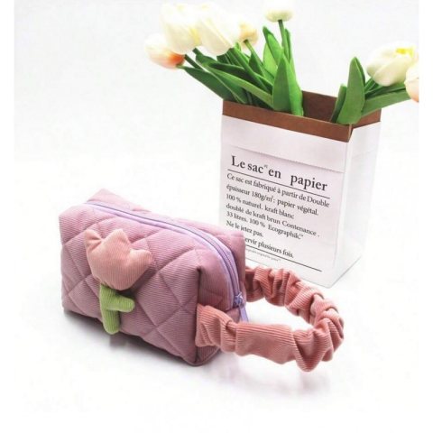Kosmetyczka z motywem tulipana, pikowana podłużna fiolet KS101WZ3