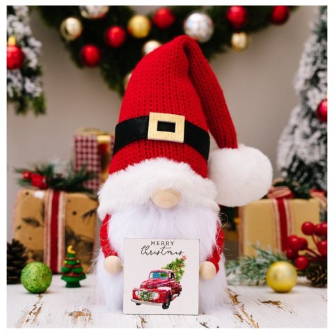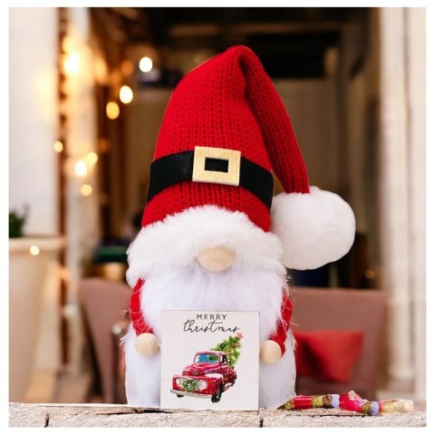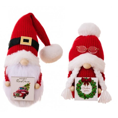 Krasnal Skrzat stojący czerwony z kartką Boże Narodzenie 24cm KSN166