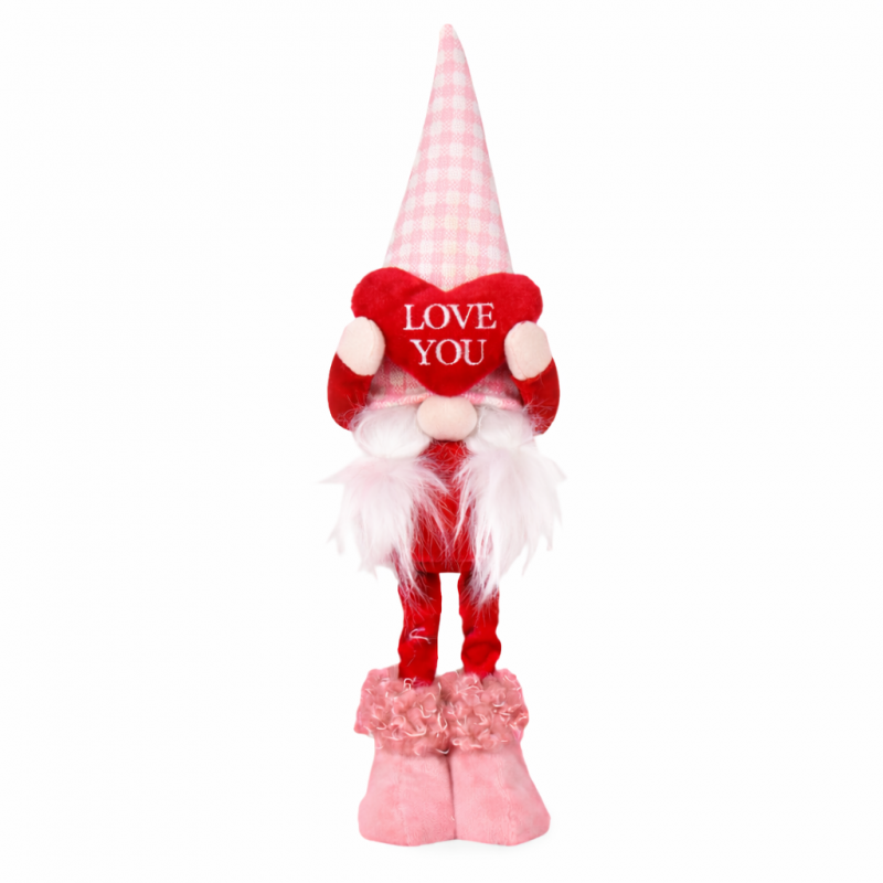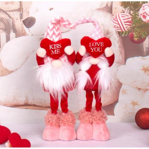 Walentynkowy krasnal na wysokich nogach Wypełniony pluszem Wymiary: 35 x 10 x 6 cm