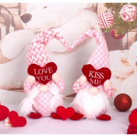 Krasnal Skrzat Walentynkowy Siedzący Pepitka Różowy KSN59