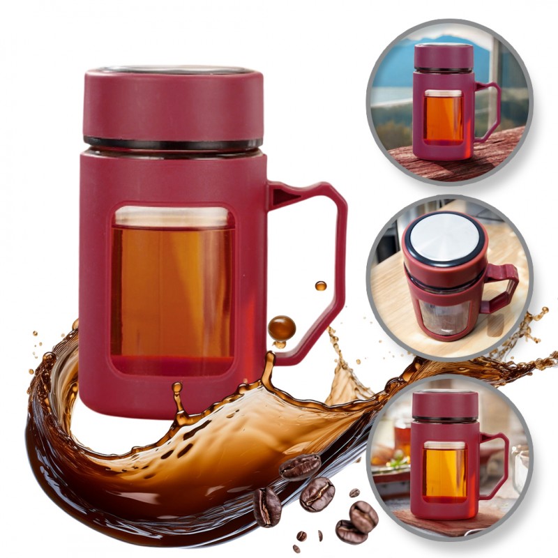 Kubek bidon ze szkła na Kawę Herbatę z uchwytem czerwony 500 ML CUP18CZE