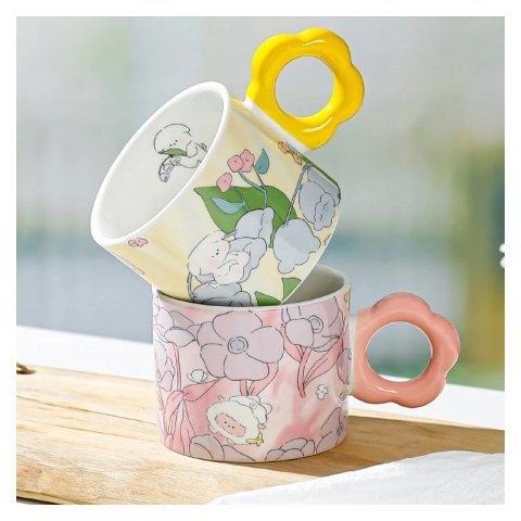 Kwiatowy Kubek z łyżeczką 280 ml + Pudełko na Prezent KB01ZO