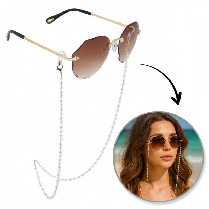 Łańcuszek do okularów Najmodniejszy dodatek tego sezonu Piękny, stylowy i praktyczny dodatek do okularów. Urozmaici każda stylizację! Specyfikacja: – Długość całkowita: 73 cm – Mocowanie: gumeczki