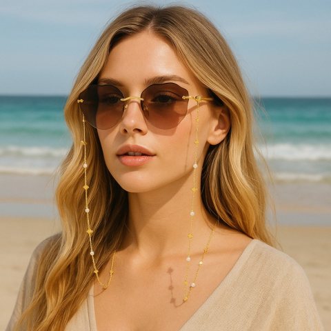 Łańcuszek do okularów Najmodniejszy dodatek tego sezonu Piękny, stylowy i praktyczny dodatek do okularów. Urozmaici każda stylizację! Specyfikacja: – Długość całkowita: 72 cm Waga: 5g – Mocowanie: gumeczki