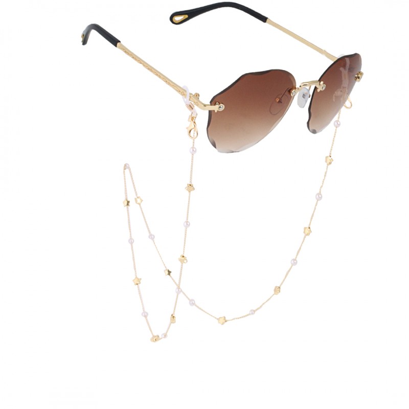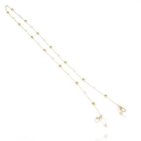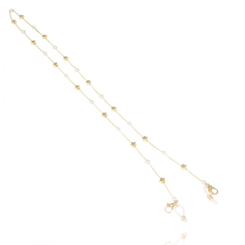Łańcuszek do okularów cienki złoty gwiazdki perły 72cm LDK09