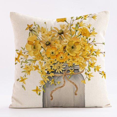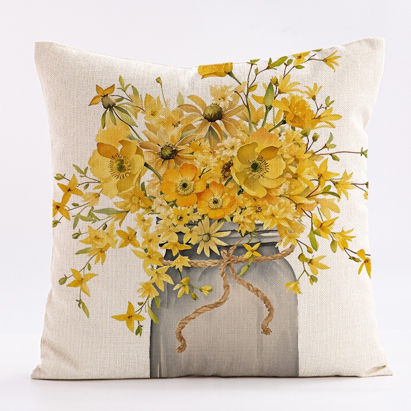 Lniana poszewka na poduszkę 45 x 45 cm z nadrukiem BUKIET KWIATÓW POD237