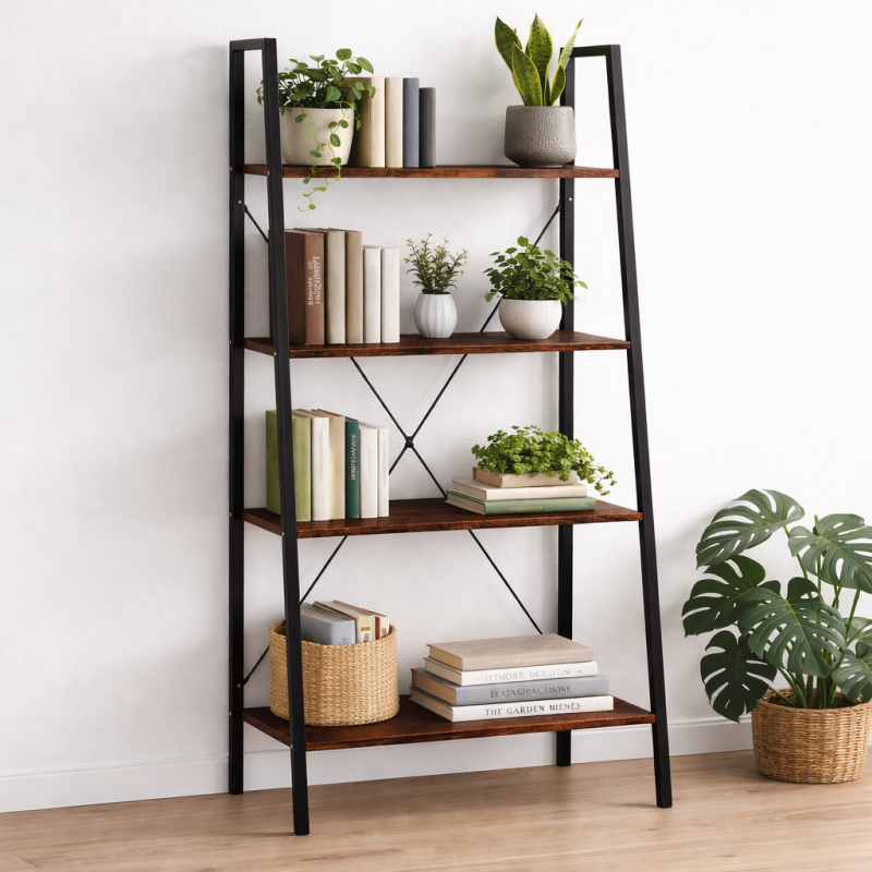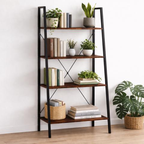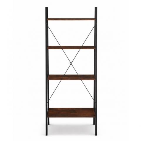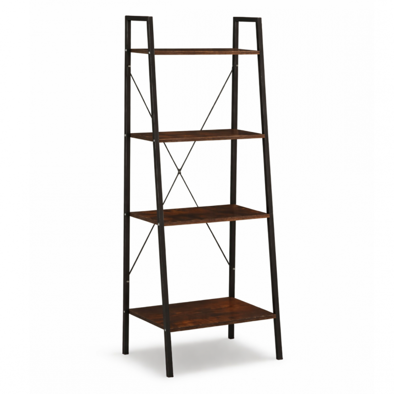 Loftowy wielofunkcyjny 4-poziomowy regał, czarny 60 x 35 x 147cm, blat brązowy SZ51BR