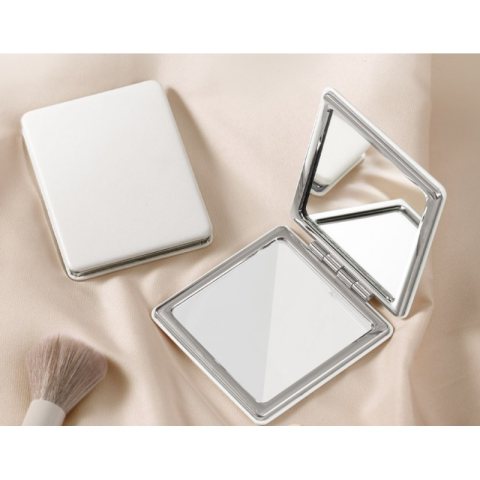 Lusterko kosmetyczne otwierane Posiada zawias pozwalający na ustalenie kąta lusterka Materiał: – metal Wymiary: – Wysokość: 7,2cm -Szerokość 7,2cm Waga: 71 g netto / 72 g brutto