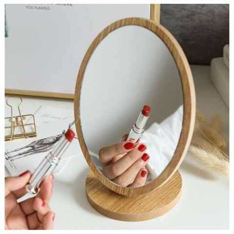 Lusterko kosmetyczne stojące drewniane owalne 22 x 16 cm L6BR