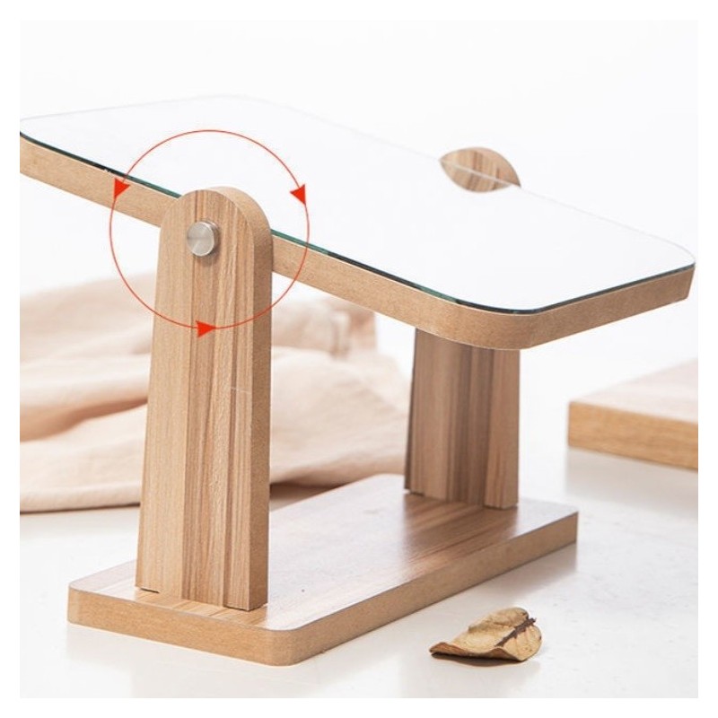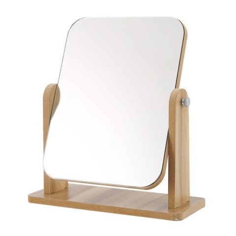 Lusterko kosmetyczne stojące Posiada zawias pozwalający na ustalenie kąta lusterka Materiał:- Drewno- SzkłoWymiary:Wysokość całkowita: 25cmWymiary lusterka: 22 cm x 17 cm Wymiary podstawy: 22 cm x 9 cm Wymiary opakowania: 23,5 x 19 x 3 cmWaga: 520g netto / 575g brutto