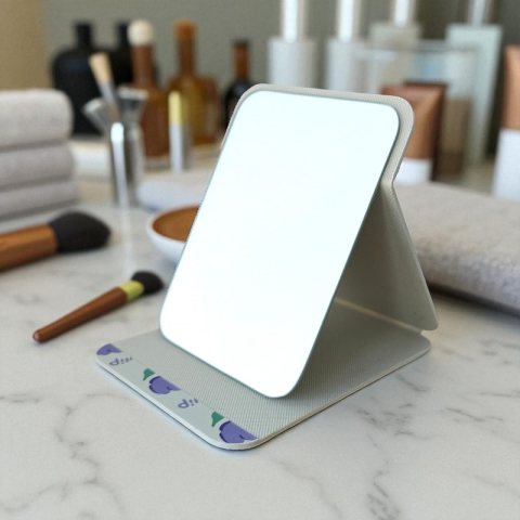 Lusterko kosmetyczne otwierane Posiada zawias pozwalający na ustalenie kąta lusterka Materiał: – ekoskóra Wymiary: Lusterko: 20cm x 14cm Całość: 20cm x 15,3cm Wymiary opakowania: 30cm x 20cm Waga: 261g netto / 271g brutto