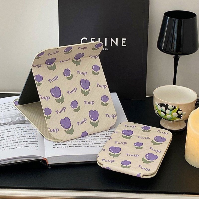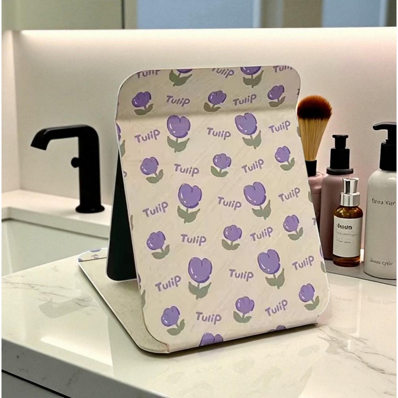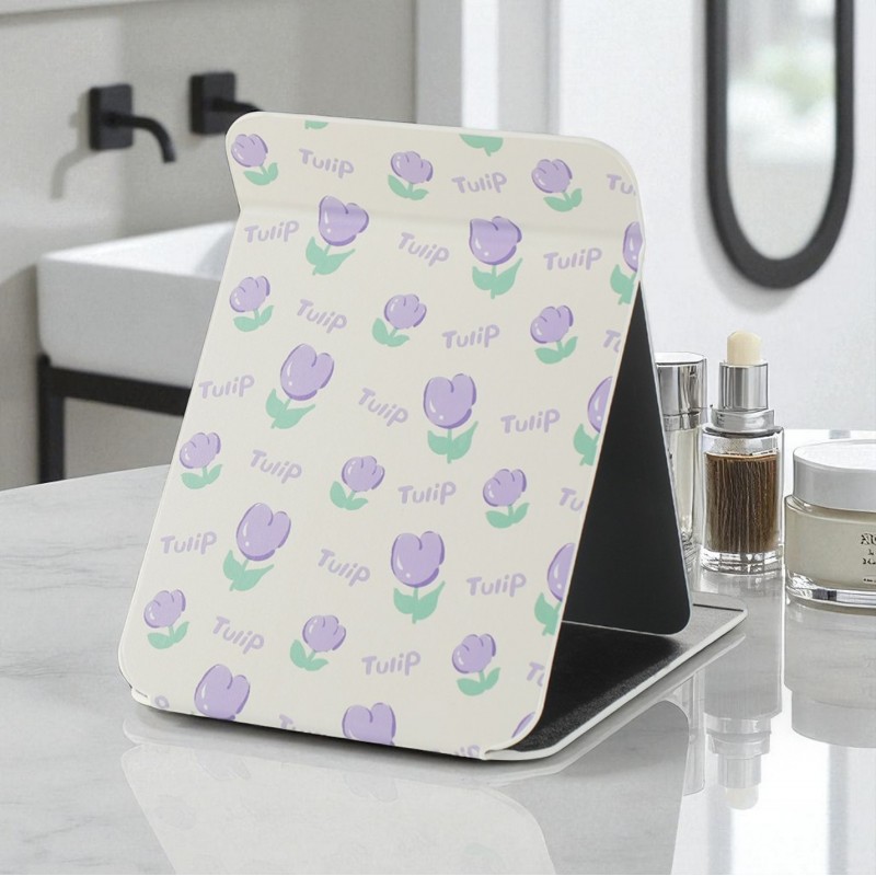 Lusterko kosmetyczne z ekoskóry, otwierane, stojące duże, tulipany 15 x 20 cm L22
