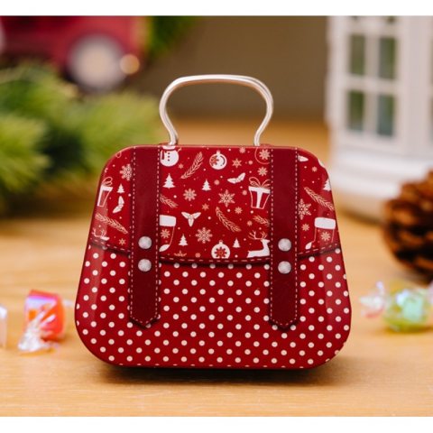 Metalowy pojemnik z uchwytem na cukierki czerwony 7cm x 5,5cm KSN164